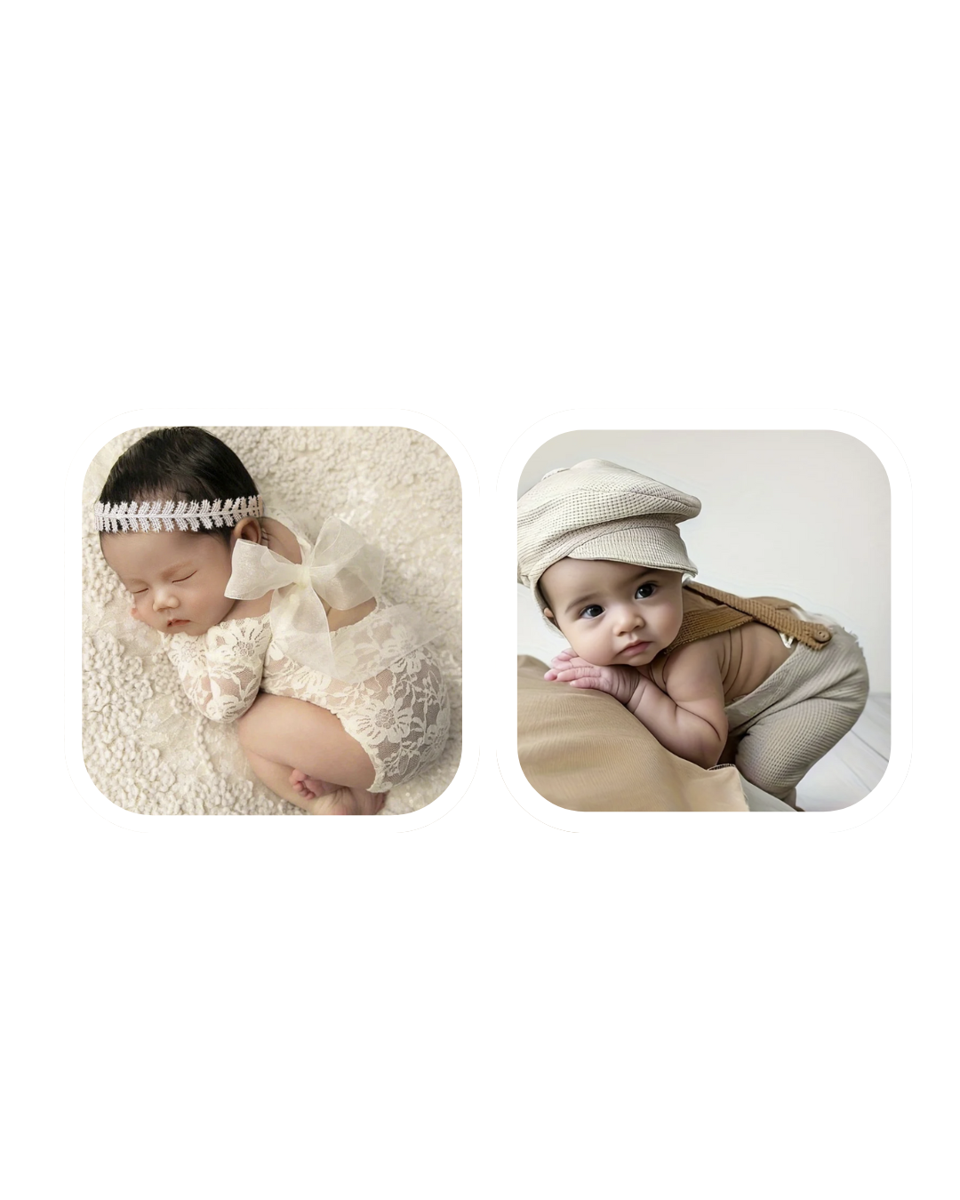 Cette collection a été pensée pour sublimer ces instants précieux à travers des tenues soigneusement sélectionnées pour les premiÚres séances photo de bébé.