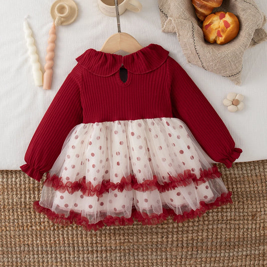 Robe BĂ©bĂ© Fille NoĂ«l "Cerise EnchantĂ©e" avec Cardigan Rouge ĂlĂ©gant | Festive