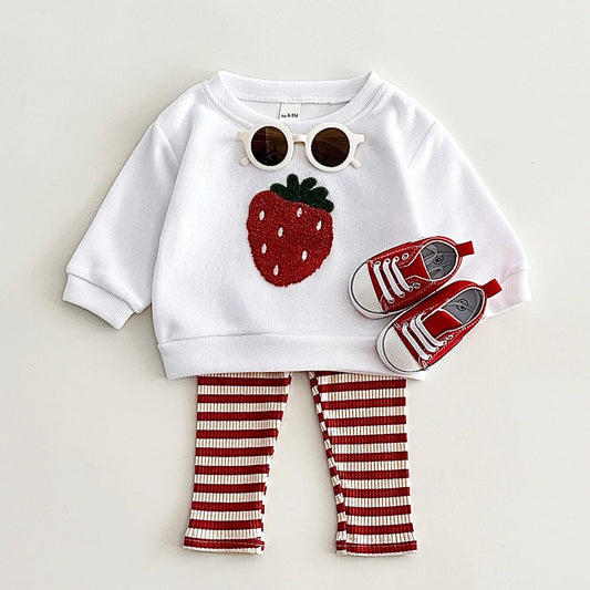 Ensemble Douceur FruitĂ© â Sweat moelleux & pantalon rayĂ© pour bĂ©bĂ©