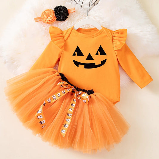 Barboteuse Citrouille Rose d'Automne + Bandeau