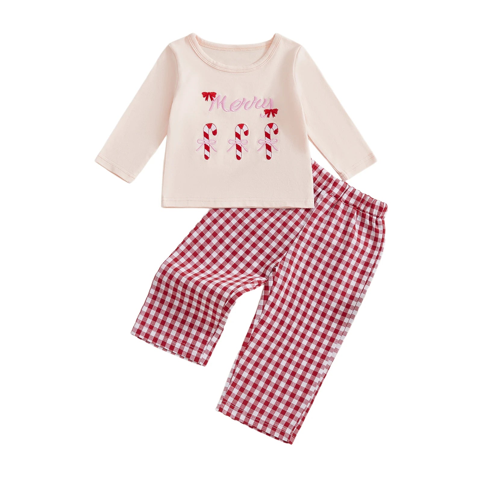 Ensemble Noël Bébé Fille– Haut Brodé & Pantalon à Carreaux | Tenue d'Hiver 2 Pièces | Festif