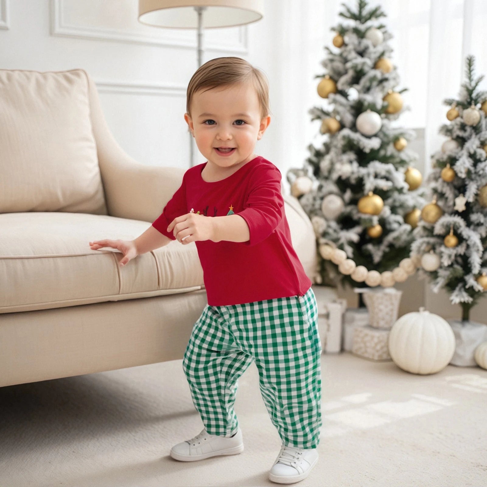 Ce n'est pas simplement une tenue, c'est la promesse de souvenirs prĂ©cieux capturĂ©s en photos, de cĂąlins chaleureux au coin du feu et de moments inoubliables en famille. Notre ensemble deux piĂšces allie douceur exceptionnelle et design festif pour transformer chaque instant des fĂȘtes en magie pure.