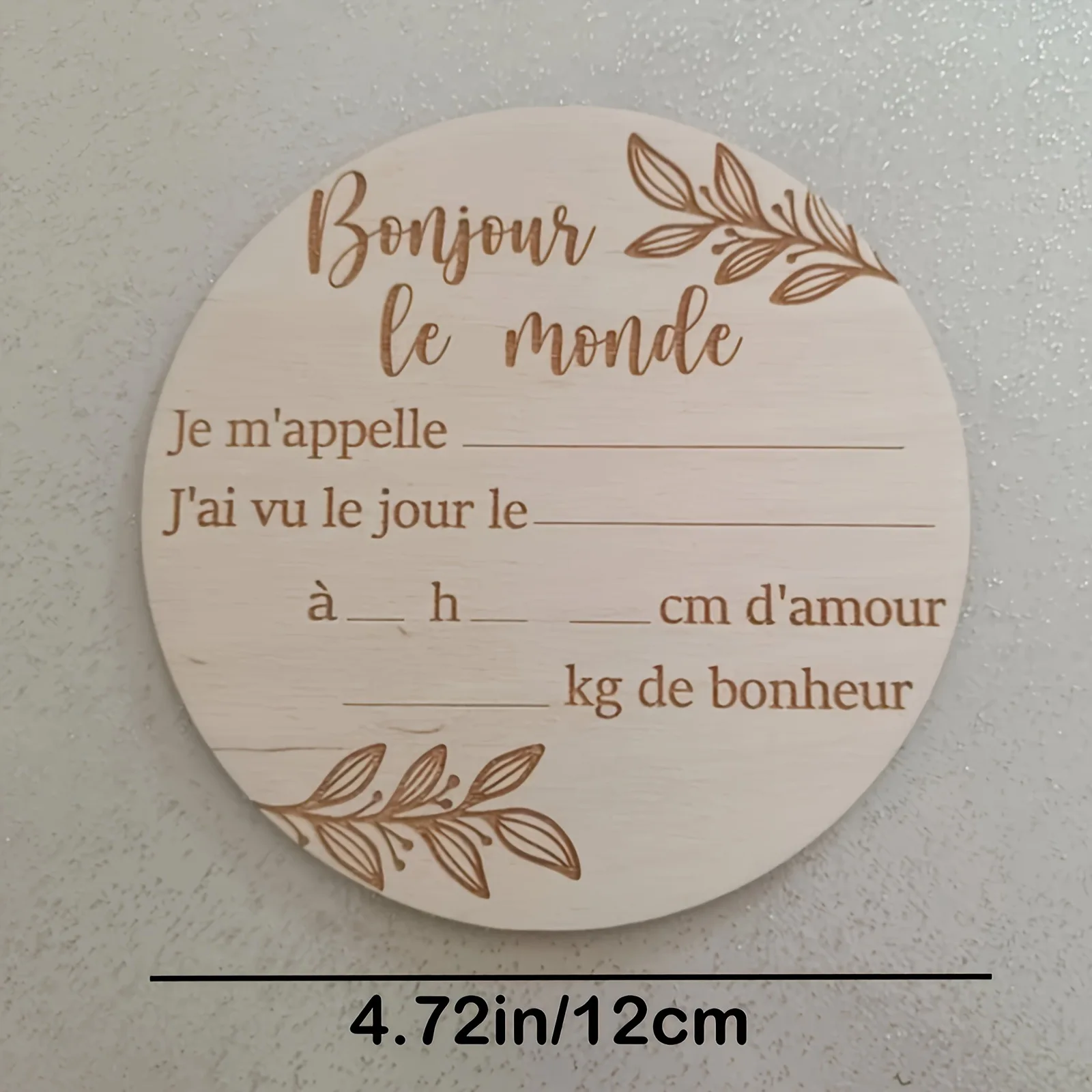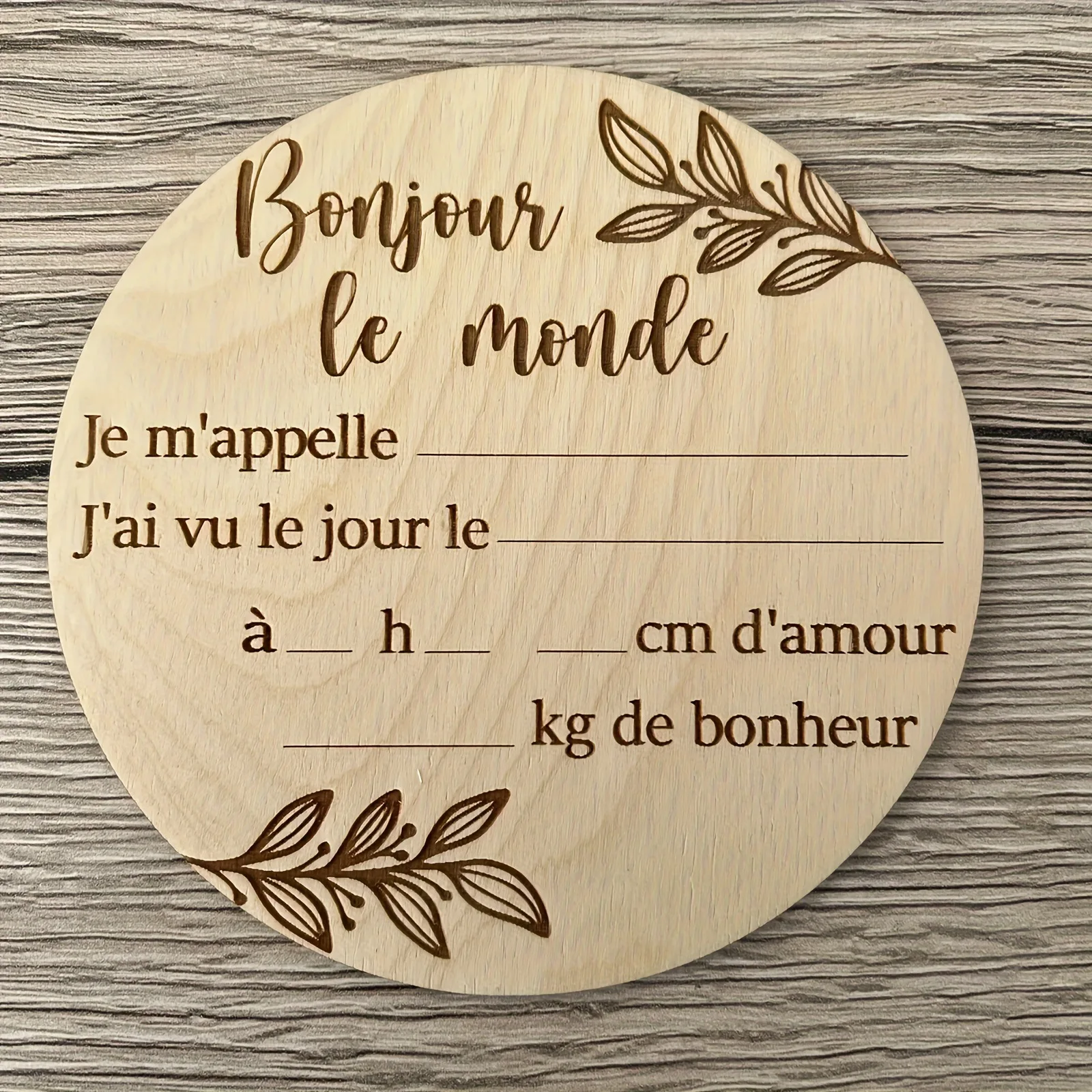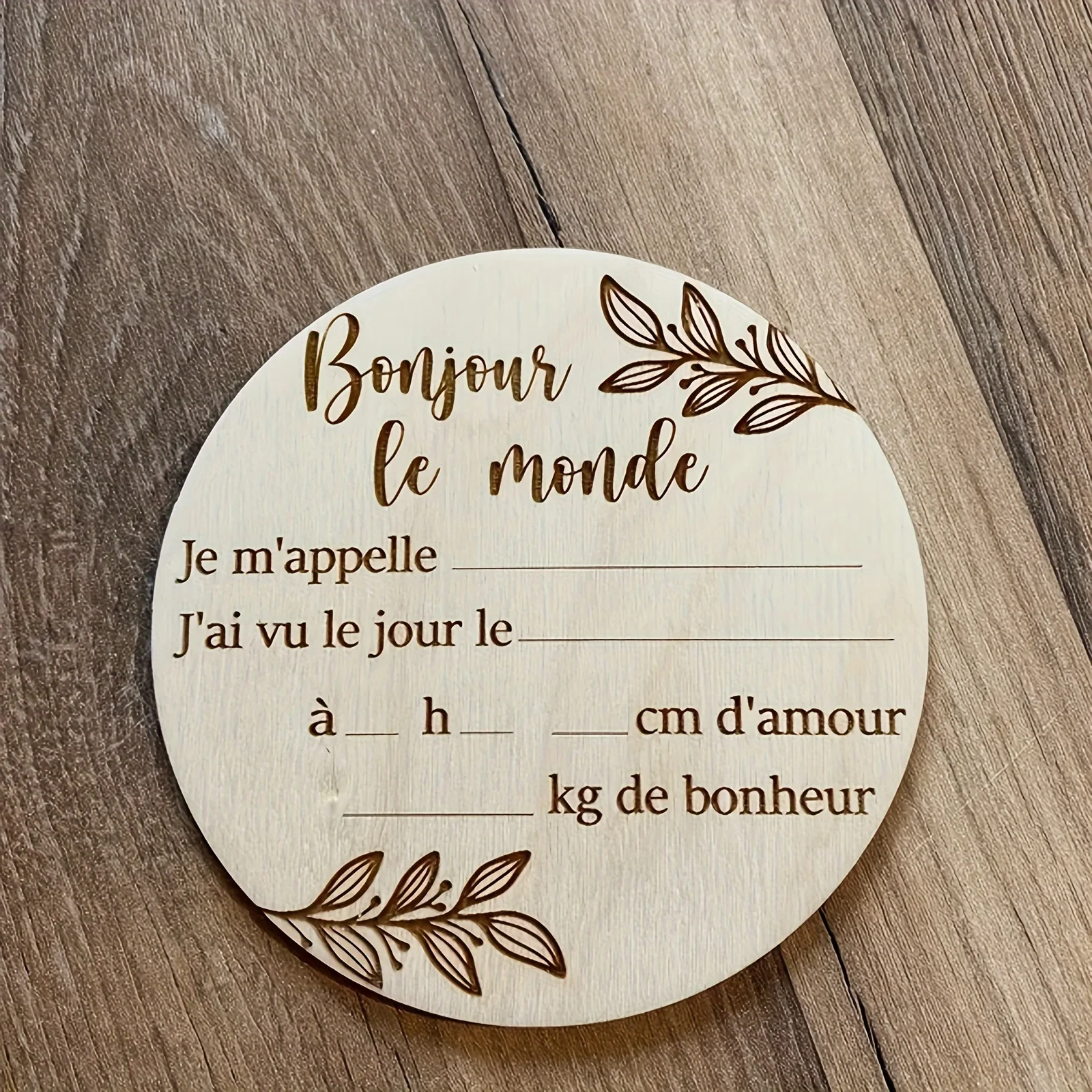 Plaque en bois « Bonjour le monde » pour immortaliser l'arrivée
