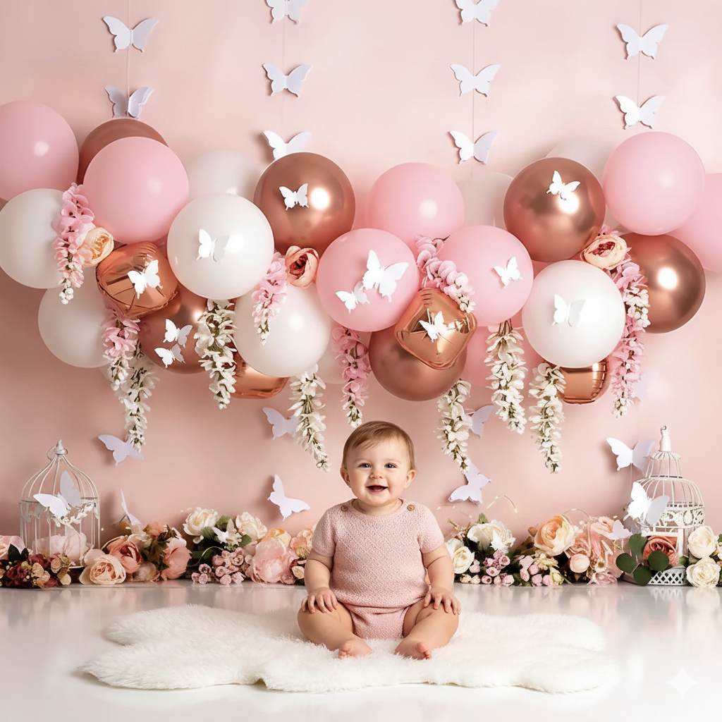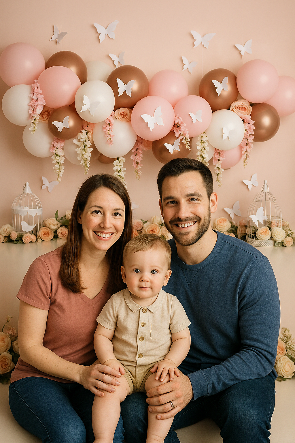 La Toile de fond "“Rêve de Papillons Roses” est bien plus qu’un simple décor : c’est une invitation à l’enchantement. Ses papillons délicatement posés sur un fond rose tendre plongent vos sujets dans une ambiance douce, poétique et chaleureuse – idéale pour capturer des sourires authentiques et des émotions sincères.